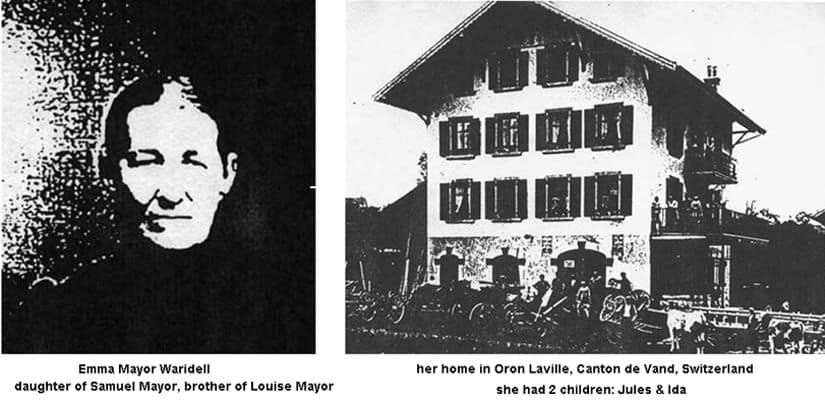 In 1655 Pierre Rossier settled in Vevey on the shore of Lake Geneva. He had 10 children. One, Jean Rossier was born in 1652 and he had Jean (John), (1710-1797). He was an Attorney at Les Tavernes and Rougemont, Switzerland. He was married to Madeleine George and died at the age of 87 on March 30, 1797. His son, Daniel Isaac Rossier (1752-1803), was baptized at Chatillens on February 25, 1752. He was married to Marguerite Cordey who died on January 11, 1805, at the age of 44. Daniel died on March 23, 1803 at Les Tavernes at the age of 51. Among those he left behind was a son. John Daniel Rossier was born January 13, 1797, at Les Tavernes and baptized January 27,1797, at Chatillens. He was married to Jeanne-Marie Thonney from Vulliens on August 19, 1825 at Chatillens. The parents later moved to a farm in Les Tavernes and the father died there on November 23, 1843. Four children were born to them: John, Louis, Marie, and Susan. John was born December 12, 1825, at Vulliens and baptized on December 23rd. Louis had a son named Charles and a daughter named Fanny. Charles lived in the Les Tavernes area all of his life. Marie was born about 1830. Her married name was Corde'. She had a daughter named Emma, married name was Monet. Emma had two children: Eugene Monet who settled in Russia around 1890 and a daughter named Jane Monet. Susan was born October 20, 1835 and came to America with her eldest brother, John. She later married Frank Domina who worked as a laborer and part-time minister. They settled on a small farm in Newport, Vermont where they lived most of their lives. They never had any children. Susan died April 29, 1911 at the age of 76. Frank lived alone for about ten years. As he became older, and in poor health, he moved in with Emile and Esther Rossier at Montgomery Center. He died on November 25, 1923 at the age of 83. Frank and Susan are buried in the Newport Center Cemetery. John Daniel RossierJohn Daniel was born with an abnormal leg, which gave him some difficulty in his childhood years but improved as he got older. His parents were determined that he should have a good education as he would be somewhat handicapped to do a lot of physical work. There were times his mother carried him to school, as he was not able to walk the distance. After acquiring an education, John became a teacher in the elementary schools of Vevey, Switzerland. On August 19, 1847, he married another teacher, Jeanne Louise Mayor (born January 1, 1826). She was the daughter of Daniel Mayor and Louise (Woridel) Mayor from Oren-le-Chateau. Growing up she lived in the Chateau d'Oron about 20 miles North of Vevey, Switzerland. It was the home of her father, Daniel Mayor when he was governor of the Canton. ![]()